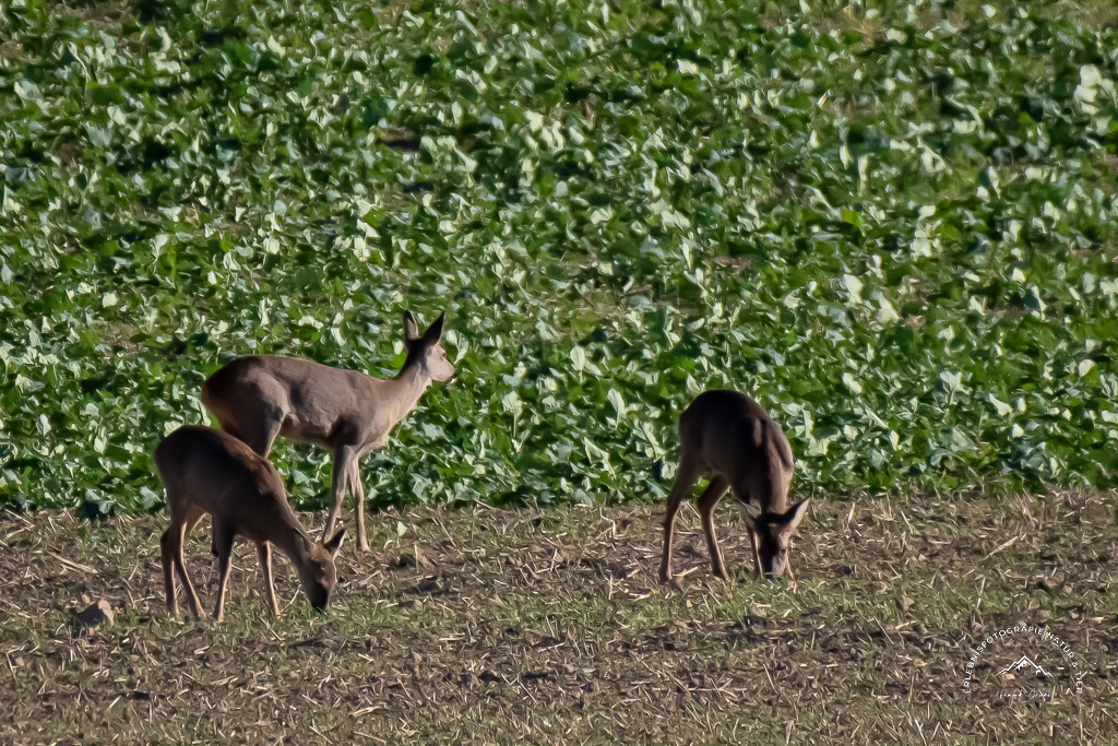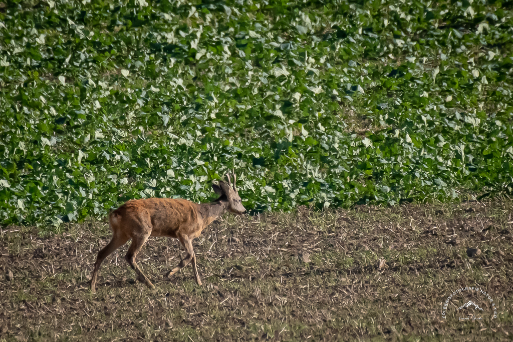 Mit etwas Glück trifft man beim kleinen Örtchen Steinlah hin und wieder auch auf einen kleinen Verband Rehwild. Weil dieses Gebiet JAGDFREI ist, sieht man diese scheuen Tiere dort immer wieder mal ganz entspannt auch tagsüber beim äsen.