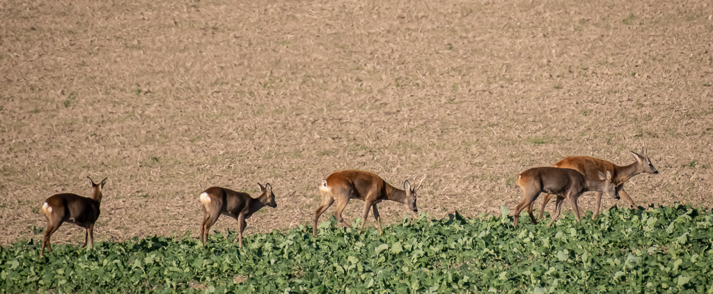 Gestern hatte ich Glück: neben einer kleinen Herde Rehe gab es außerdem einen prächtigen Bussard und auch Falken am Himmel zu bestaunen. Ein absolut gelungener Nachmittag mit tollen Fotomotiven – und ganz ohne die Tiere dabei zu stören!